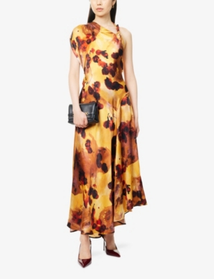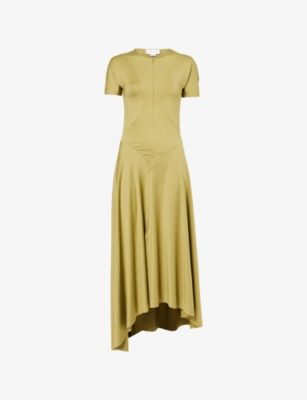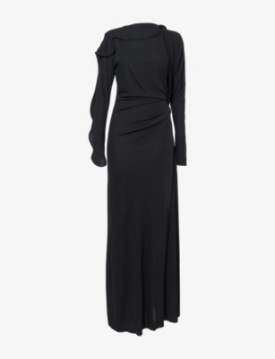 Asymmetric Plunge Stretch-Woven Maxi Dress