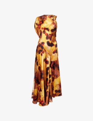Gathered Floral-Print Woven Midi Dress