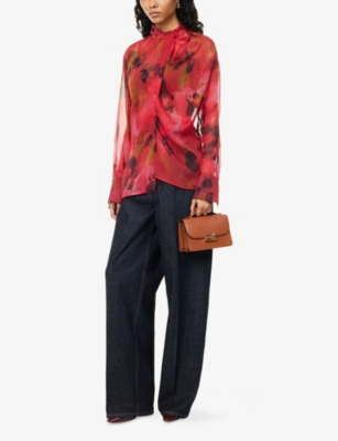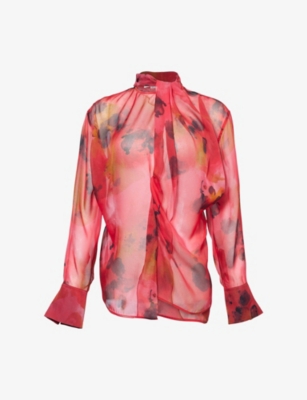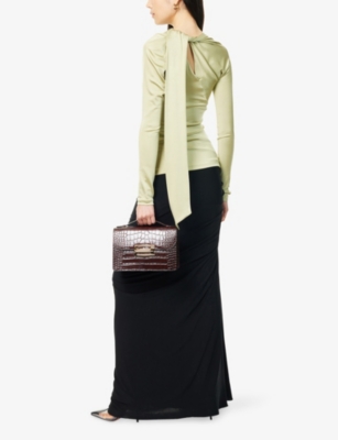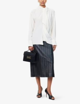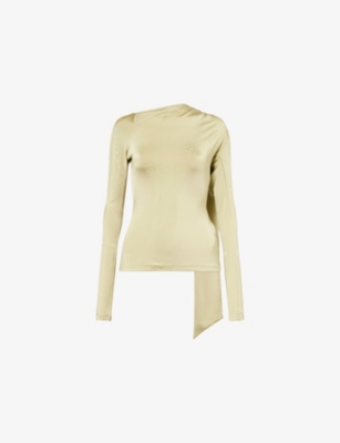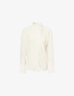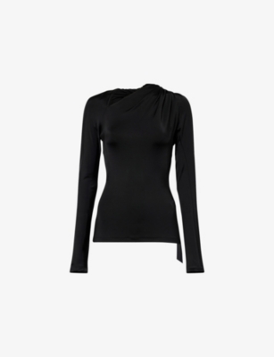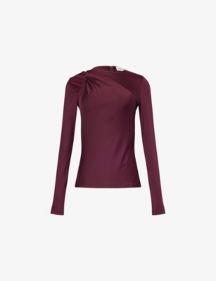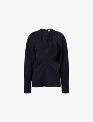 Twisted-Neckline Textured Stretch-Woven Blouse