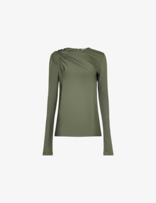 Twisted-Panels Long-Sleeves Stretch-Woven Top