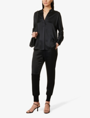 VINCE: Collar V-neck silk-blend shirtVINCE: Collar V-neck silk-blend shirt