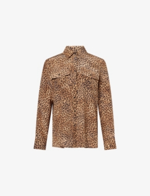 Leopard-print Long-Sleeve Silk Blouse