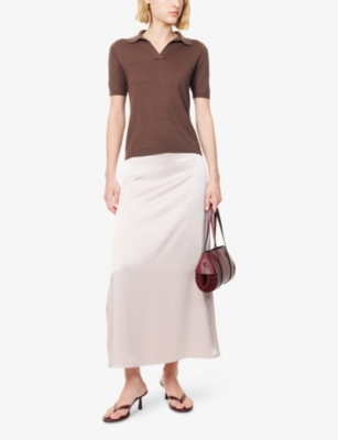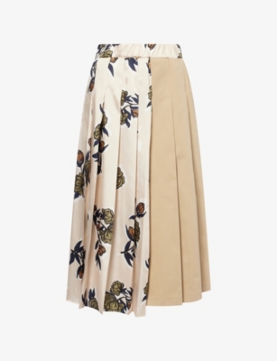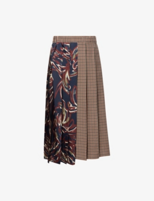 Fanale Contrast Pleat Wool-Blend Midi Skirt