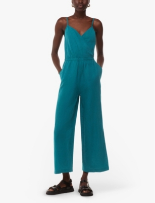 Wrap-front sleeveless linen and cotton-blend jumpsuit- Discount price:€119.00