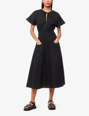 Avery Smocked-Bodice Short-Sleeve Cotton Midi Dress- Discount price:€148.00