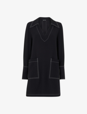 Contrast-Stitch Oversized-Collar Woven Mini Dress- Discount price:€111.00