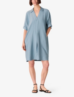 Button-Neck Relaxed-Fit Gathered Woven Mini Dress- Discount price:€66.00