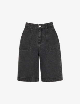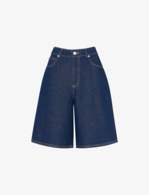 Wide-Leg High-Rise Knee-Length Denim Shorts