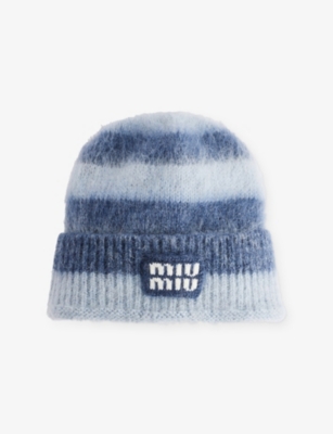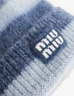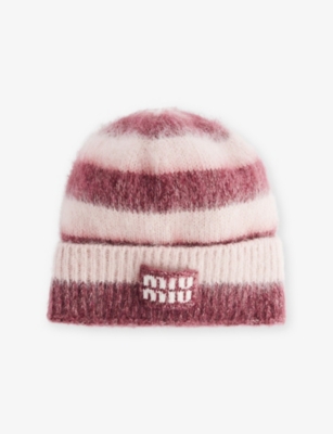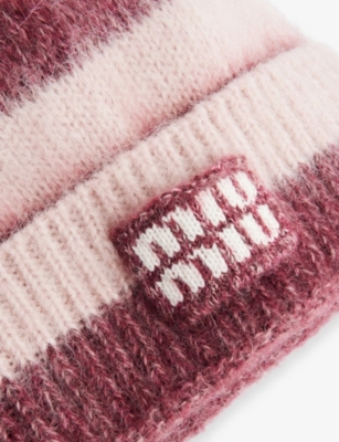 Striped Logo-Patch Wool-Blend Beanie Hat