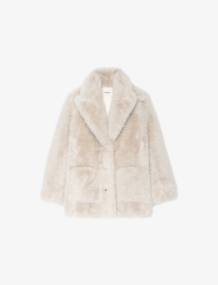 Lapel-Collar Side-Pocket Faux-Fur Jacket