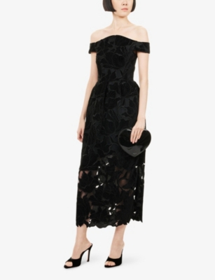 Bardot Off-Shoulder Wool-Blend Midi Dress