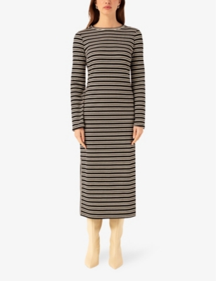 Round-Neck Stripe-Pattern Woven Midi Dress- Discount price:€94.00