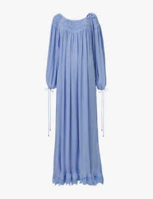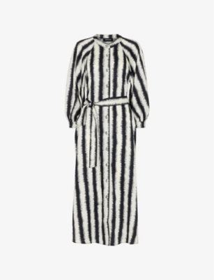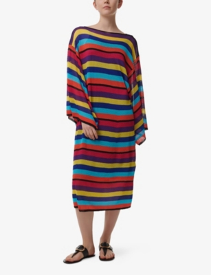 Striped fluted-sleeve stretch-woven midi dress- Discount price:€49.50