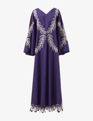 V-neck long-sleeve metallic-yarn kaftan- Discount price:€82.00