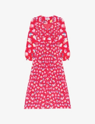 Multi Butterfly-Print Button-Through Crepe Midi Dress- Discount price:€50.00
