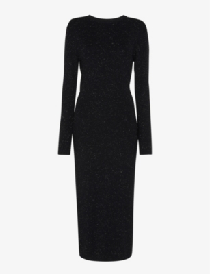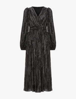 Straight-neck metallic velvet midi dress- Discount price:€50.00