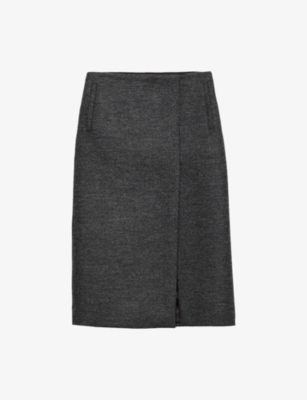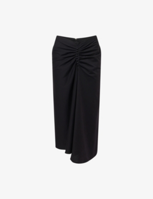 Invest in knit midi skirts with fluid open weaves and scalloped hems, as well as wool-blend iterations that fuse traditional tailoring codes with sculptural volumes. Discover A-line shapes woven in heritage-inspired check prints and offset with contrasting trims and wrap-around details, or pieces rendered in crocodile-embossed leather in vivid shades such as fuchsia and scarlet. You'll find soft calf-skimming cotton options finished with dramatic ruched panels alongside breezy items signed off with ruffles, feathers and embroidered flourishes.