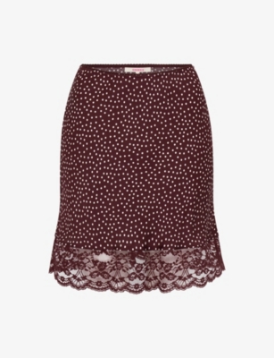 Graphic-Pattern Logo-Tab Stretch-Woven Mini Skirt