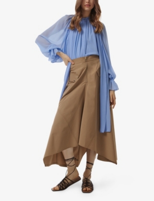 High-rise asymmetric-hem pleated woven midi skirt- Discount price:€51.00