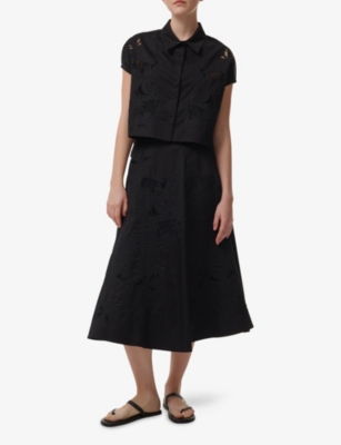 Broderie Fluted-Hem Regular-Fit Cotton Midi Skirt- Discount price:€107.00
