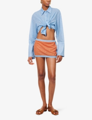 SIMKHAI: Stitch Wrap Linen-Blend Mini SkirtSIMKHAI: Stitch Wrap Linen-Blend Mini Skirt