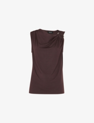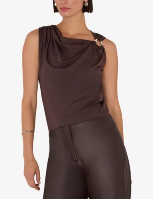 Ring-Detail Cowl-Neck Stretch-Woven Top
