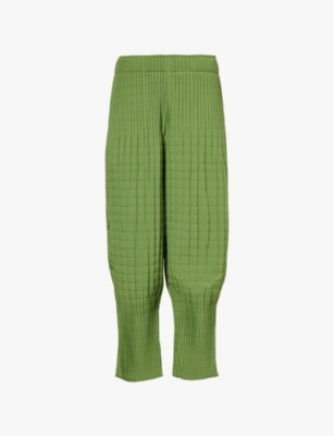 Drawstring-waistband rhinestone-embellishment straight-leg mid-rise knitted trousers- Price:€265.00