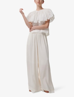 Frilled-Trim Flared-Leg Mid-Rise Stretch-Knit Trousers- Discount price:€210.00
