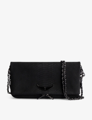 Rock python-embossed wing-embellished leather clutch