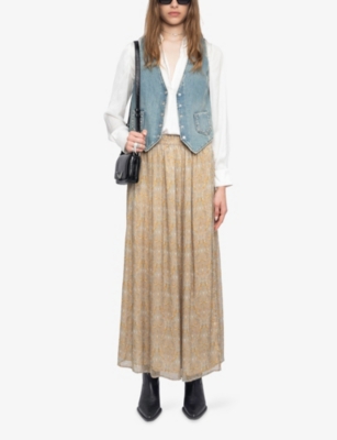 Julen Paisley-Print Lace-Embroidered Satin Midi Skirt- Discount price:€225.00