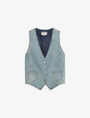 Gillier V-Neck Patch-Pocket Denim Waistcoat- Discount price:€260.00