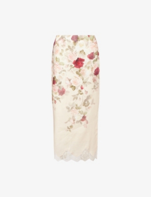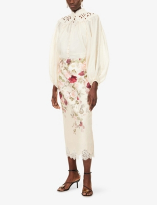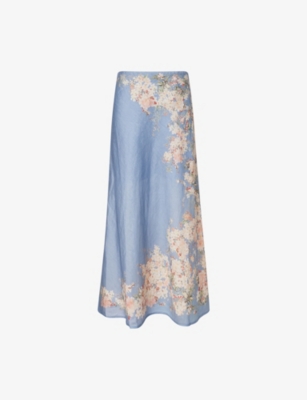 ZIMMERMANN: Hypnotic Floral Linen Midi SkirtZIMMERMANN: Hypnotic Floral Linen Midi Skirt