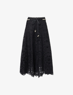 ZIMMERMANN: Lucky Embroidered Cotton Midi SkirtZIMMERMANN: Lucky Embroidered Cotton Midi Skirt