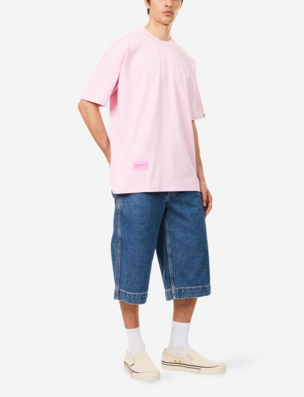 - Relaxed-fit, short-sleeves, crewneck, ribbed collar, text graphic-print at front and back, embroidered brand-batch at sleeve