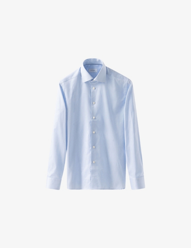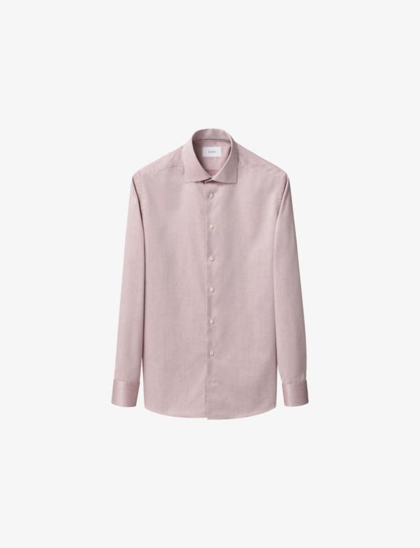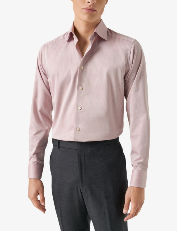 - Contemporary fit, cut-away collar, long sleeves, buttoned cuffs, floral-print trim