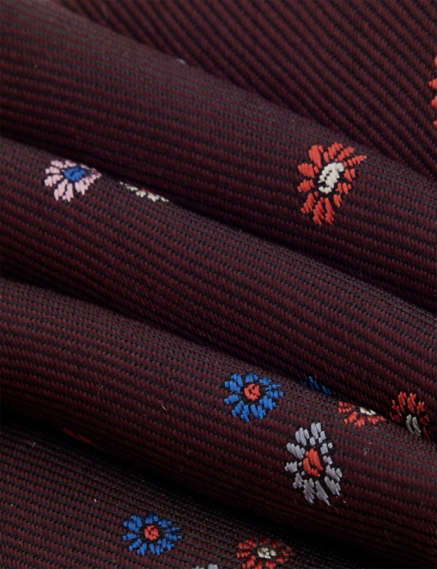 - Wide blade, pointed tip, 'Artist Stripe' keeper loop, all-over polka-dot pattern, textured finish, contrasting lining