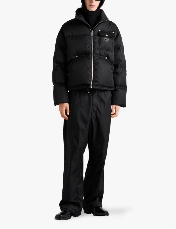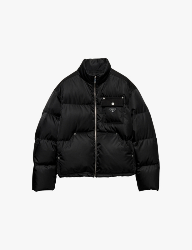 - Enamelled metal triangle logo, three card slots, three document pockets