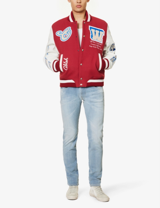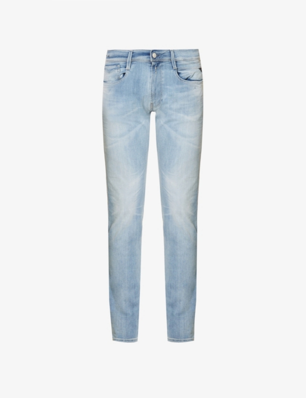 - Slim fit, low-rise, straight leg, belt loops, five pockets, brand tab at front, brand patch and brand embroidery at back