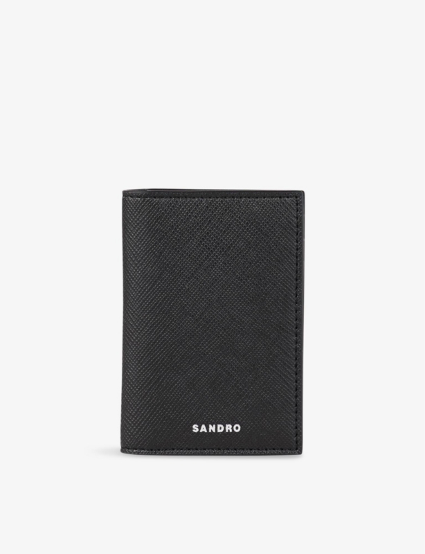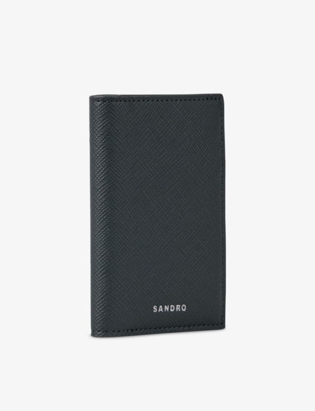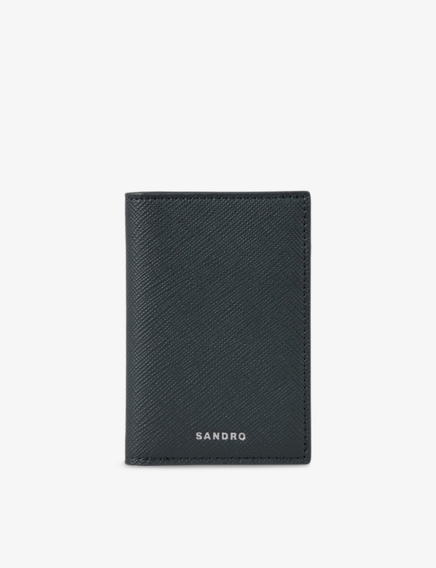 - Square silhouette, silver-tone foil writing at the front, zip fastening, three card slots
