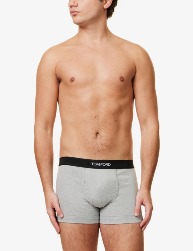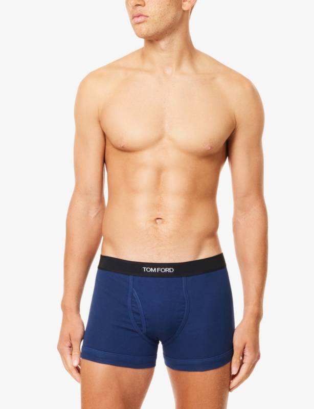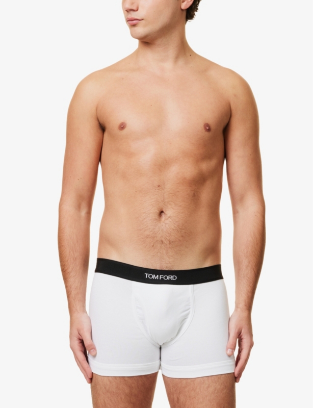 - Low rise, branded elasticated waistband, supportive pouch at centre front, abstract pattern