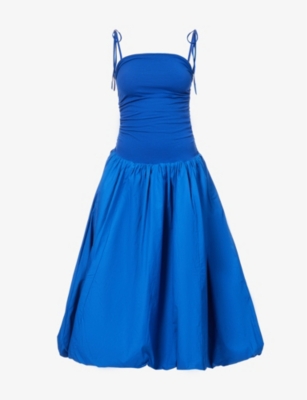 Ruched-side strapless puffball cotton midi dress- Discount price:$1,460.00