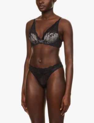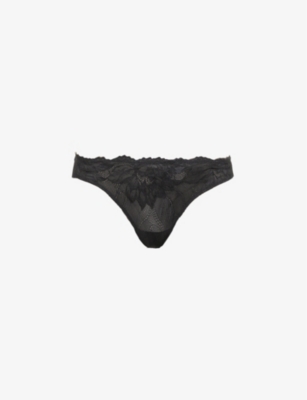 Low-Rise Lace-Panel Stretch-Woven Thong