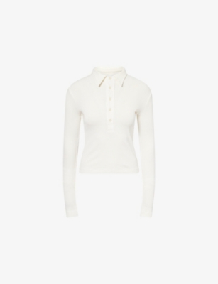 Pilar Long-Sleeve Waffle-Knit Cotton Top