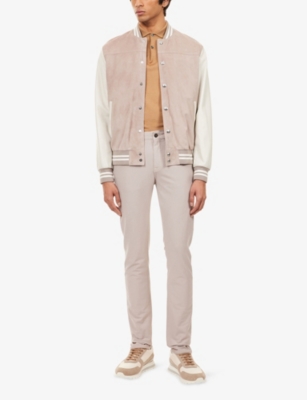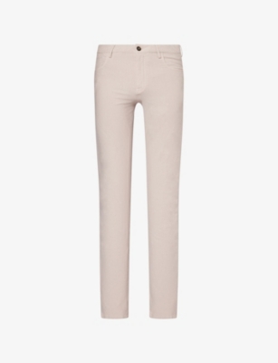 Flat-Front Tapered-Leg Cotton Blend Chino Trousers