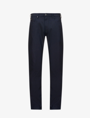 Equal parts casual and contemporary, our selection includes a mix of straight, slim-leg and tapered silhouettes with both low-rise and mid-rise waists. Our Emporio Armani black jeans are a versatile year-round choice and feature five pockets and branded hardware and patches. On the other end of the denim spectrum, blue options span bleached, paint-splattered and faded-wash styles, all designed with ample stretch for day-long comfort. They're also finished with the iconic eagle motif for a style-driven sign-off to your looks.