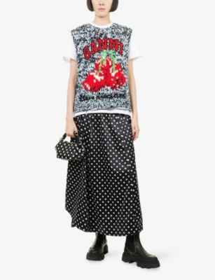 Make the most of cold weather and cosy up in ladies' designer knitwear with GANNI. The label was founded in 2000 by gallerist Frans Truelsen and today the Copenhagen-cool name is helmed by husband-and-wife duo Nicolaj and Ditte Reffstrup. GANNI knit pullovers from the cult brand achieve both style and practicality, with a healthy dose of the fun that captures what we love about Scandinavian fashion.