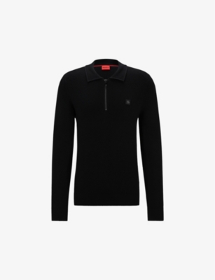 Logo-embroidered zip-neck knitted jumper