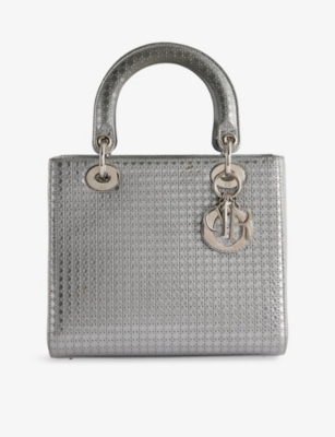 Pre-Loved Medium Metallic Patent Microcannage Lady Dior Leather Top-Handle Bag- Price:$71,200.00
