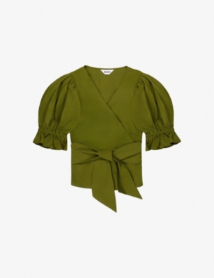 Tie-Front Puff-Sleeve Broderie Cotton And Linen-Blend Blouse- Discount price:$1,790.00