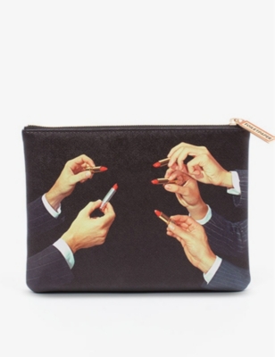 Seletti wears Toiletpaper lipstick-print faux-leather case 21cm x 15cm